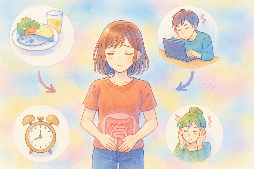 • 緊張や焦りで交感神経が優位になると、体は「戦う・逃げるモード」に入り、血流は筋肉へ優先的に送られます。その結果、胃の排出や小腸の蠕動は抑制され、食欲が落ちる一方で、大腸は過剰に動いて腹痛や下痢が起きやすくなります。