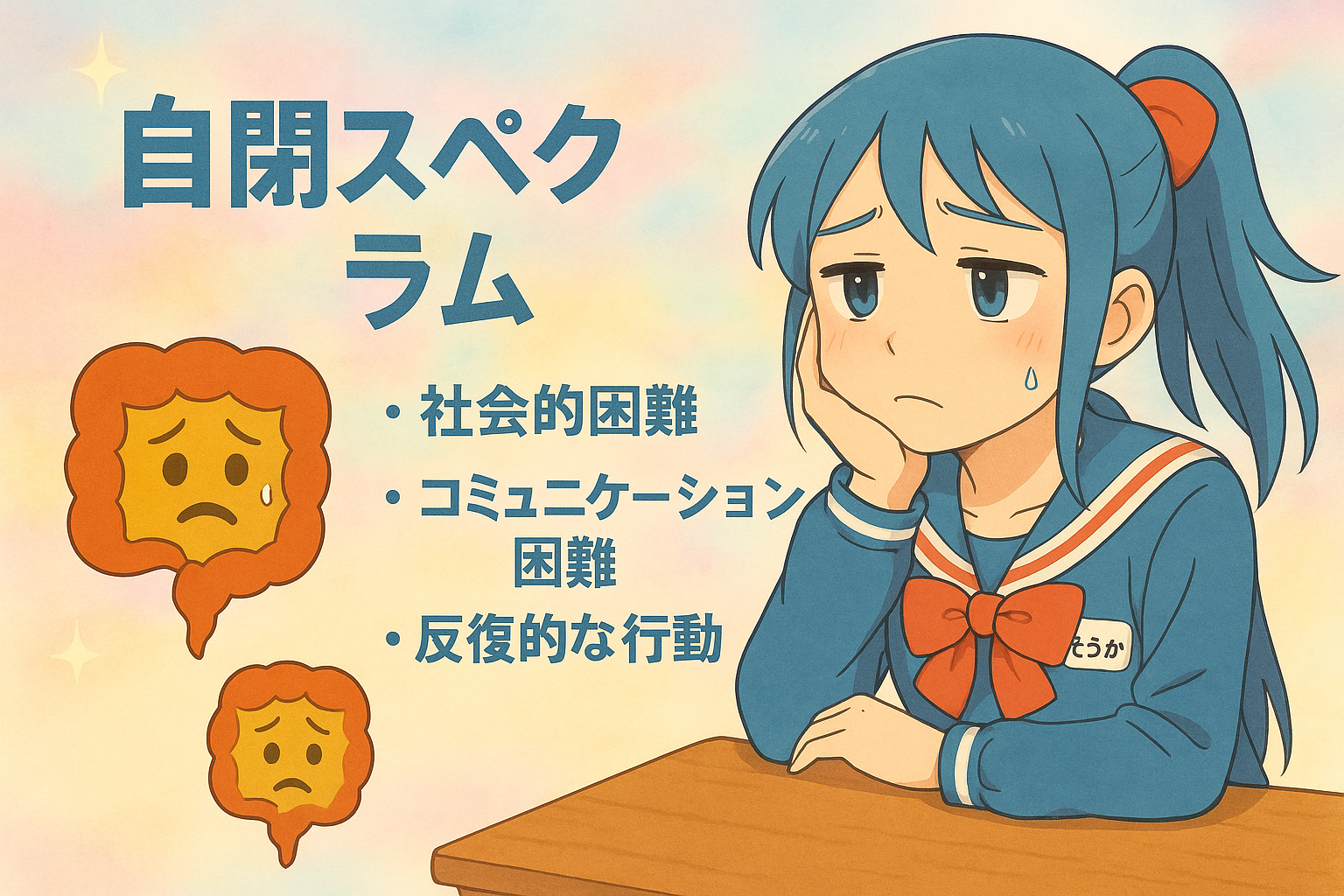 そして 免疫系の過剰反応 が重層的に絡み合って、自閉スペクトラム症(ASD)の行動特性や消化器症状に結びついているのです。