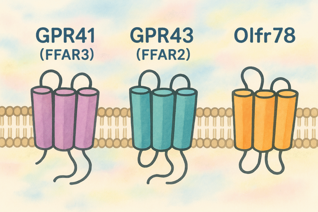 - GPR40(FFAR1) は中鎖~長鎖脂肪酸に応答し、特にパルミチン酸(C16:0)やオレイン酸(C18:1)に高い感受性を示します。