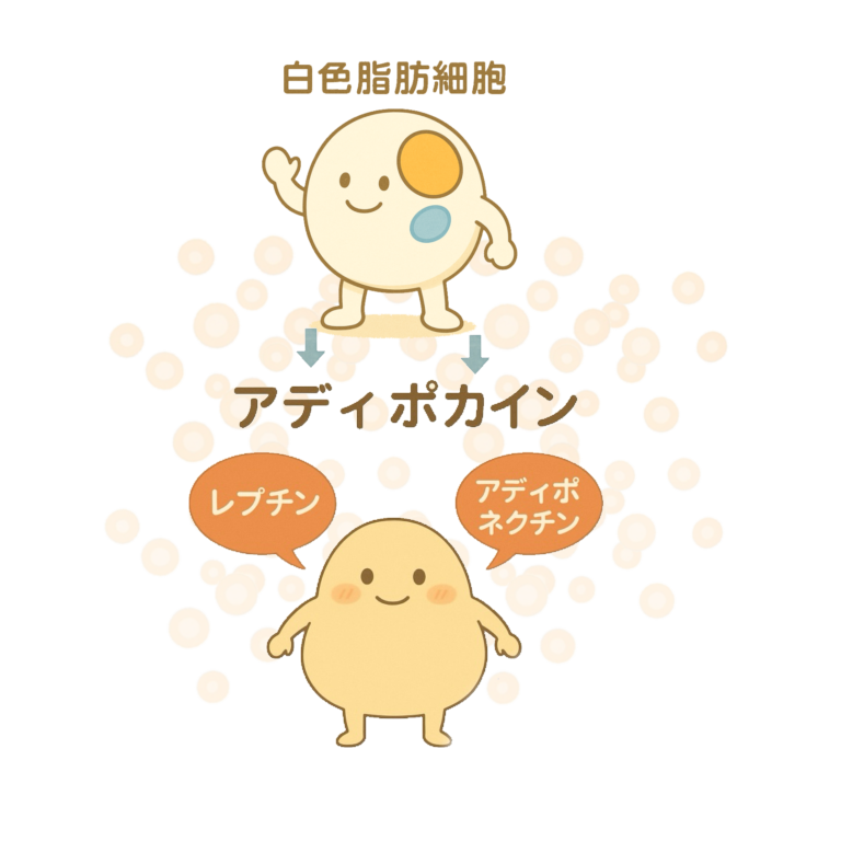 - 「白色脂肪細胞」から分泌される代表的な「アディポカイン」