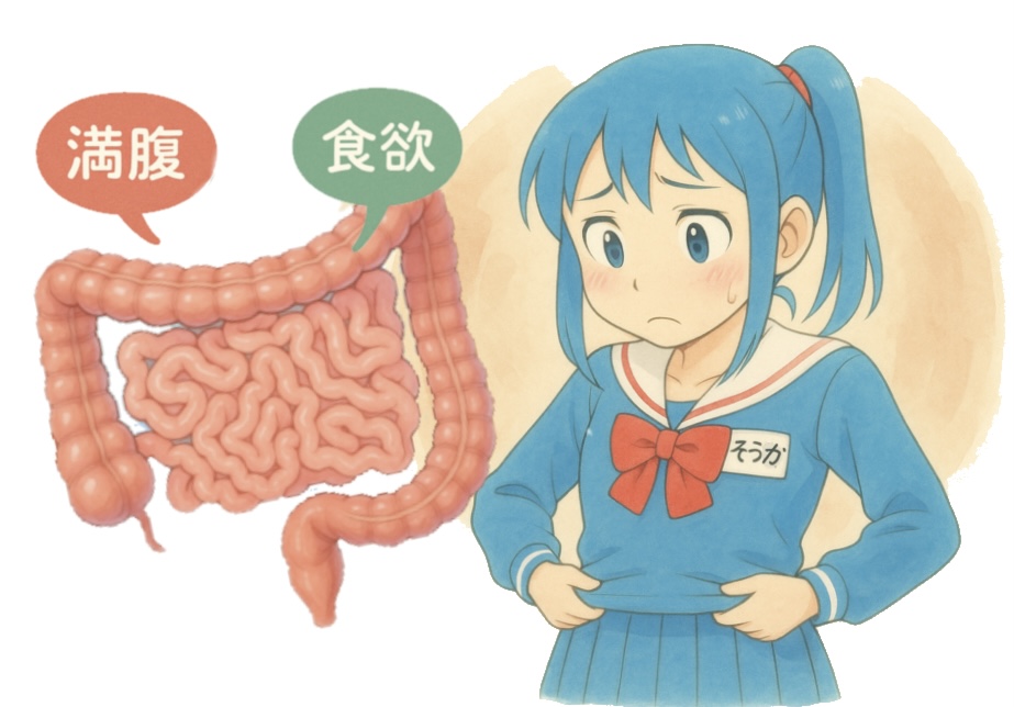 「腸―脳軸」による「食欲抑制」の重要なメカニズムの一つです。
