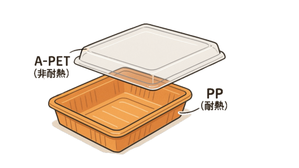 「フタ は コストの安い A-PET(非耐熱)」というケースがあります。